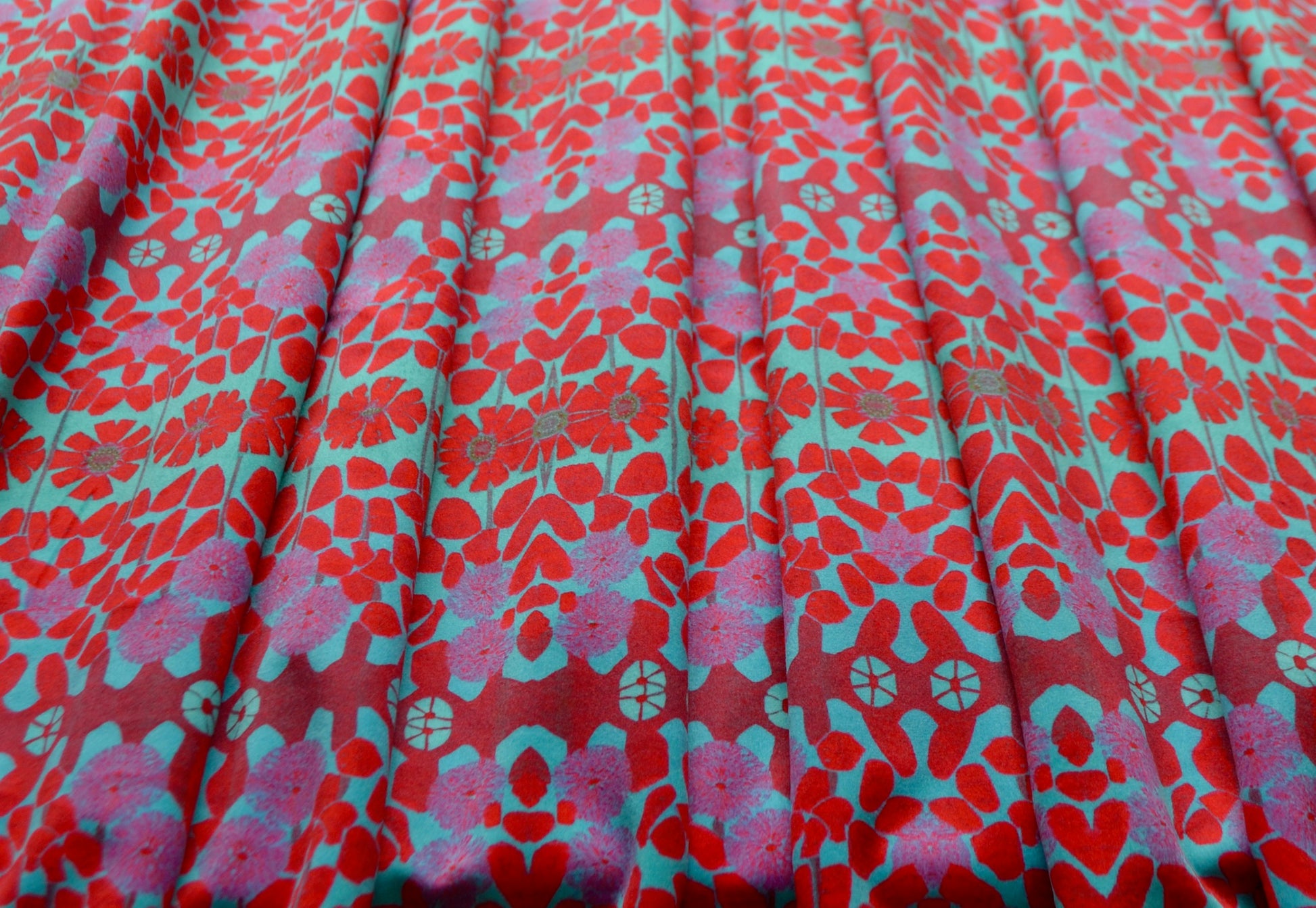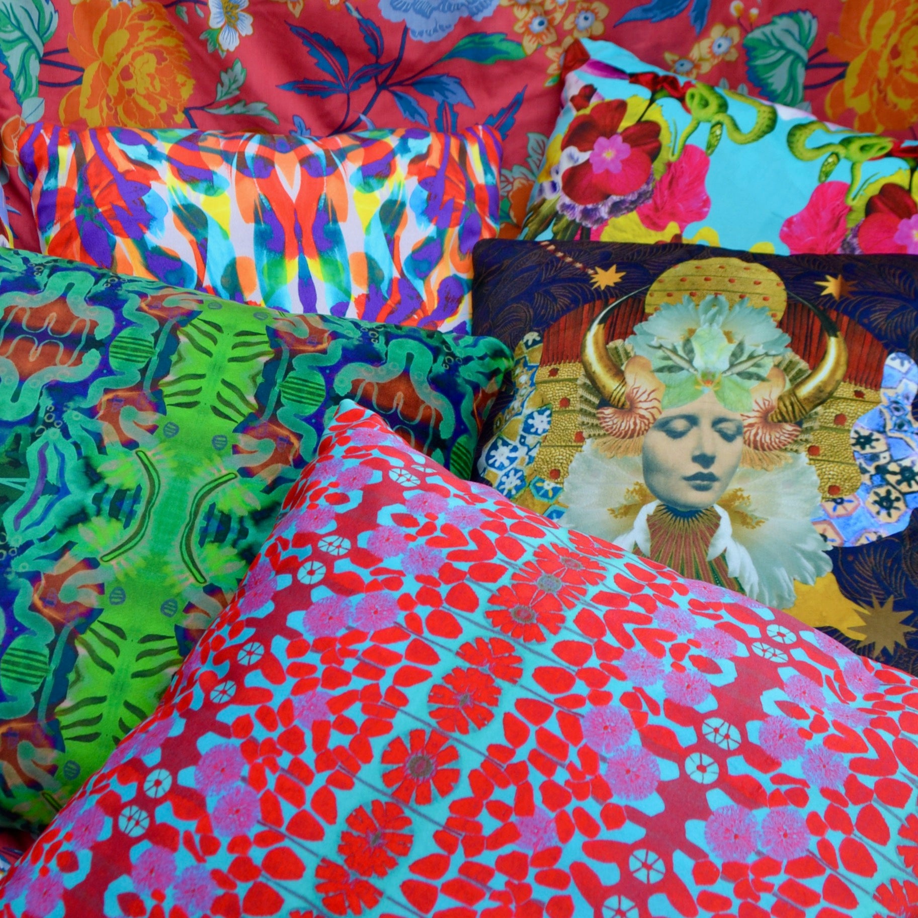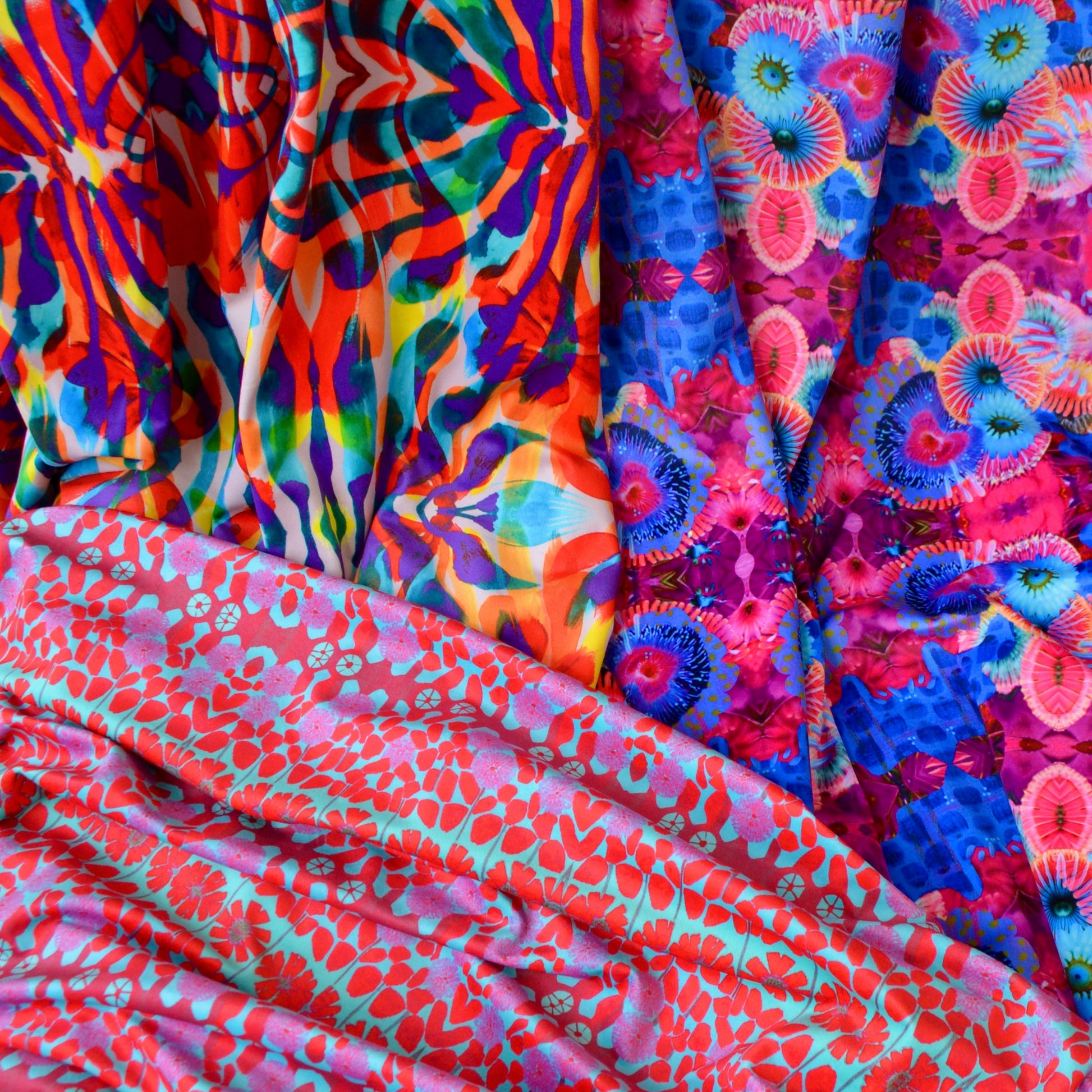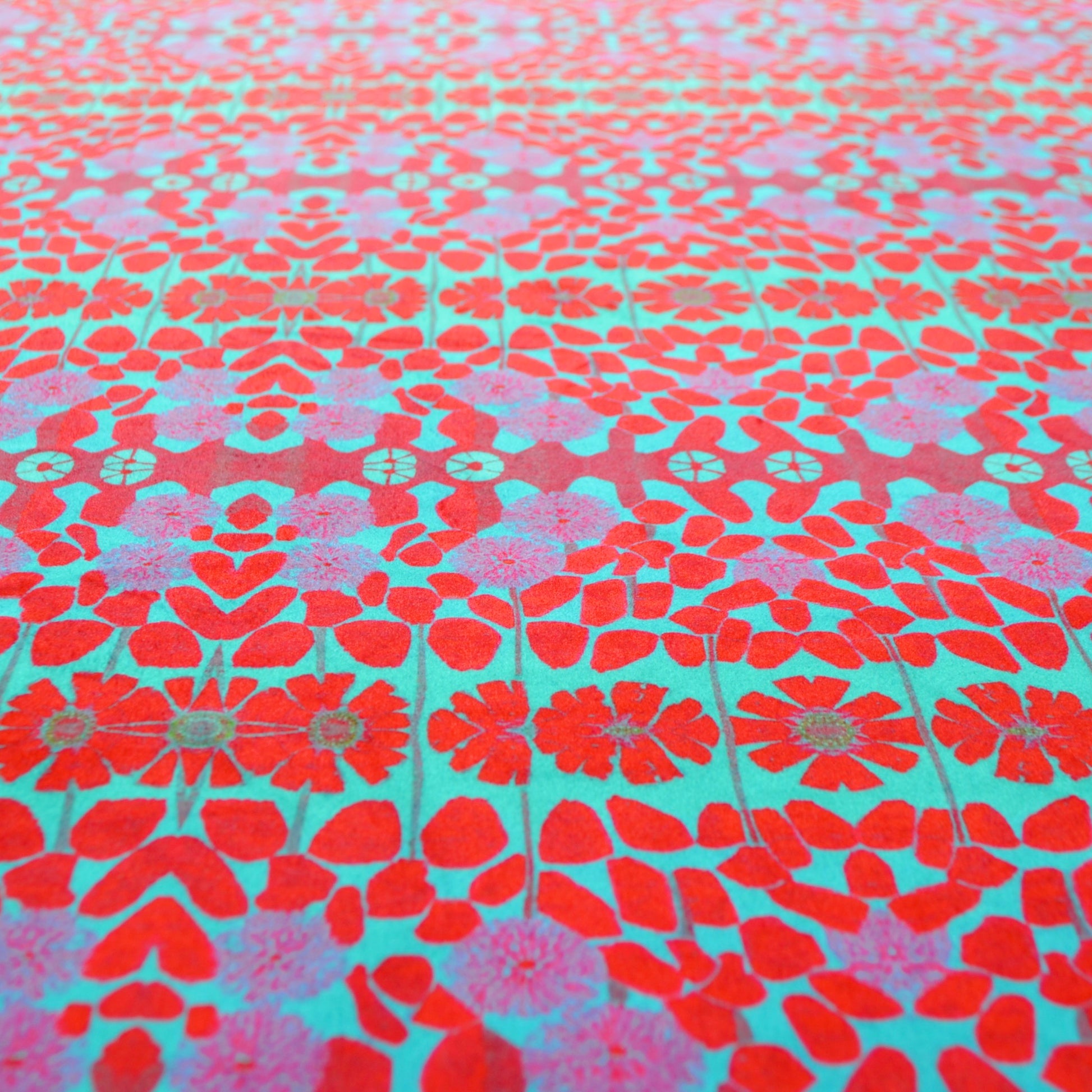Extremely soft to the touch, this fabric has a short pile, a lovely drape, and a very very slight stretch. The front features a unique, vibrant print design created by Georgia Robinson exclusively for Hapuska, the back is a soft white. This fabric is perfect for lightweight upholstery such as cushions, curtains and headboards, or heavier duty garments such as jackets or bags. The non-fraying nature of this fabric lends itself to appliqué and quilting.